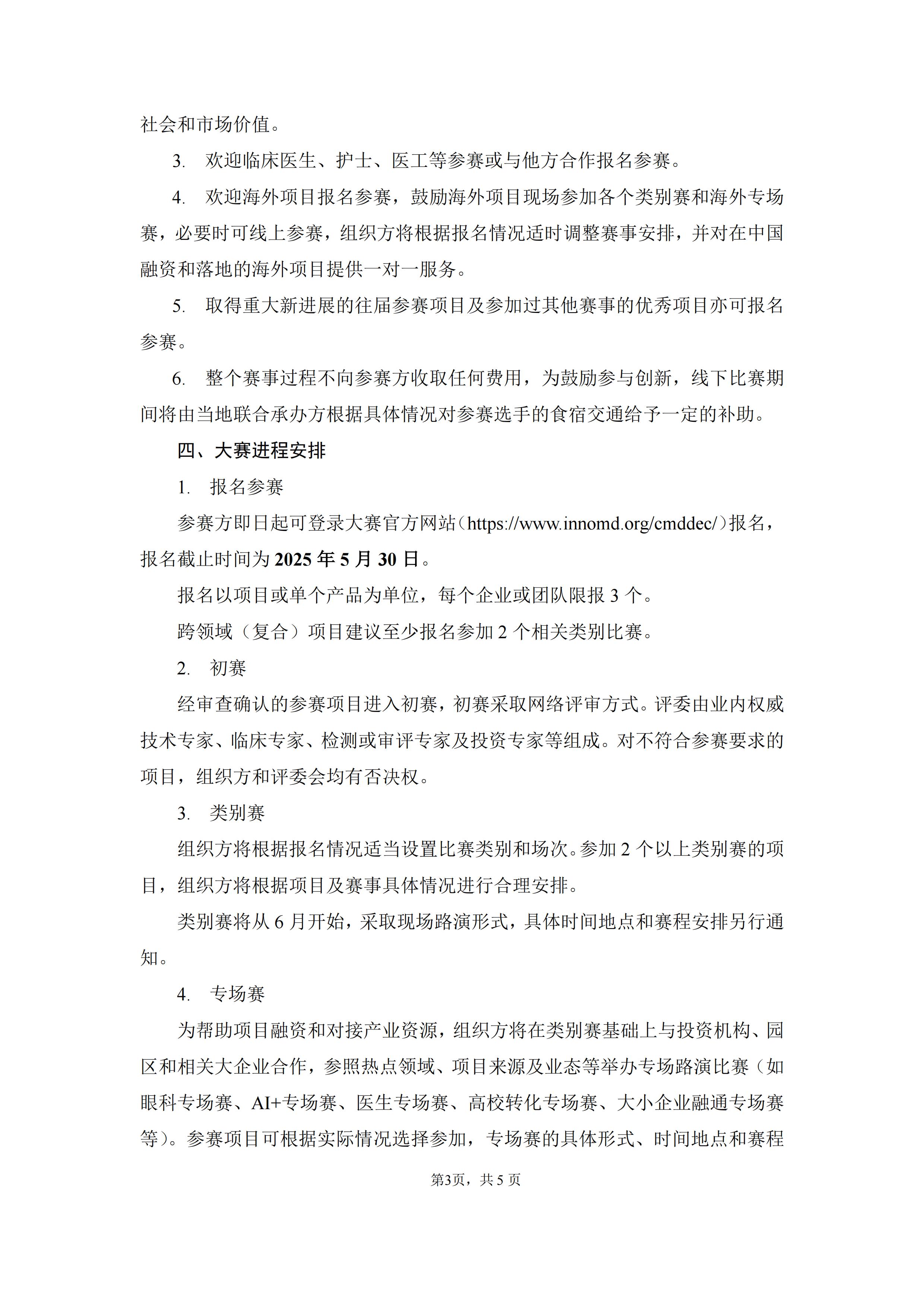 参赛方即日起可登录大赛官方网站(医疗器械创新网网://hengjiukq.com/cmddec/)报名,报名截止时间为2025年5月30日。